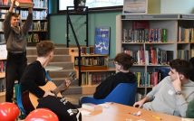 Po treningu intelektualnym i muzycznym akcencie, dwóch „klasowych siłaczy” odważyło się wykonać ćwiczenie sprawnościowe z najcięższą książką, która jest dostępna w zbiorach MiPBP w Nowym Tomyślu. Zajęcia dla młodzieży, opracowała i przeprowadziła Małgorzata Kaczmarek.
