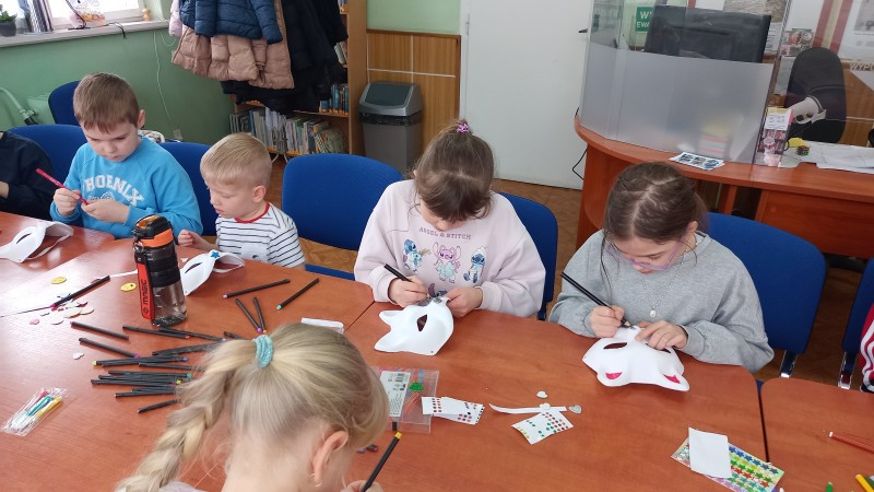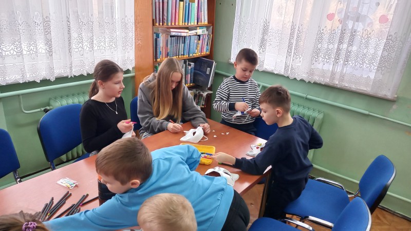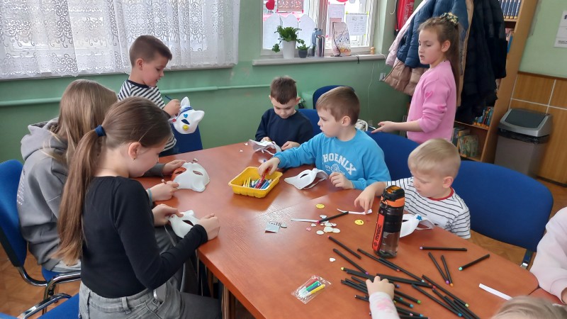 Tegoroczne ferie w bibliotece w Bukowcu były pełne radości, twórczej pracy i dobrej zabawy. W poniedziałek, 16 lutego, zorganizowaliśmy warsztaty plastyczne, podczas których dzieci mogły rozwinąć swoją wyobraźnię i zdolności manualne. Uczestnicy wykonywali papierowe pudełka w kształcie sówek – wyjątkowe skrytki na drobne skarby lub miejsce do zbierania własnych „zaskórniaków”. Każda sówka była inna i niepowtarzalna. Tego dnia powstawały także kolorowe worki, które uczestnicy malowali pisakami do tkanin. Każdy mógł stworzyć swój oryginalny wzór.. Gotowe worki dzieci mogą nosić do szkoły lub przedszkola, co sprawia, że będą nie tylko praktyczne, ale i wyjątkowe. We wtorek odbył się feryjny misz-masz – dzień pełen gier, zabaw i quizów. Nie zabrakło ruchowych konkurencji, chusty animacyjnej, zagadek oraz wspólnego śmiechu. Tego dnia obchodziliśmy również Dzień Kota, dlatego jednym z punktów programu było wykonywanie kocich masek. Dzieci z ogromnym zaangażowaniem tworzyły swoje maski, dodając wąsy, uszy i kolorowe zdobienia. Własnoręcznie przygotowane prace stały się wspaniałą pamiątką z tego wyjątkowego dnia.