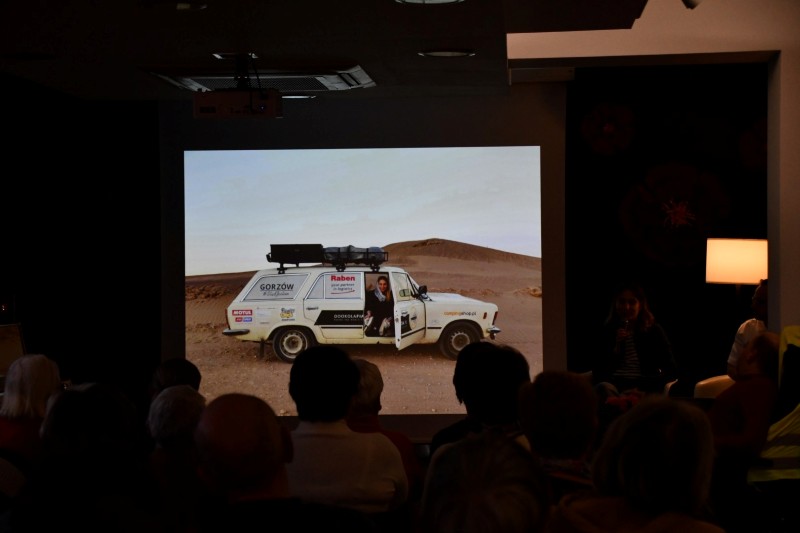 W czwartkowy wieczór, 19 marca, w naszej bibliotece, odbyło się spotkanie podróżnicze z Joanną i Pawłem Poterskimi pt. Dużym fiatem dookoła świata. Małżonkowie opowiedzieli o swojej podróży życia, która początkowo miała trwać 270 dni, jednak z różnych przyczyn wydłużyła się do 450. Wyruszyli z Gorzowa, przemierzając kolejne kraje – od Słowacji i Rumunii, przez Turcję, aż po południowo-wschodnią Azję. Wśród odwiedzonych miejsc szczególne wrażenie wywarły na nich Iran i Pakistan, a także Stany Zjednoczone. Podczas spotkania nie zabrakło barwnych anegdot i zabawnych sytuacji z trasy, które wywoływały uśmiech na twarzach słuchaczy. Podróżnicy podkreślali, że na swojej drodze spotykali niemal wyłącznie życzliwych i pomocnych ludzi. Opowiedzieli także o mniej łatwych momentach wyprawy, m.in. o awarii fiata, która stała się kolejnym wyzwaniem, ale i przygodą wpisaną w tę niezwykłą podróż. Uczestnicy mieli również okazję zobaczyć zdjęcia oraz film z wyprawy, które pozwoliły jeszcze lepiej poczuć klimat tej niezwykłej podróży.