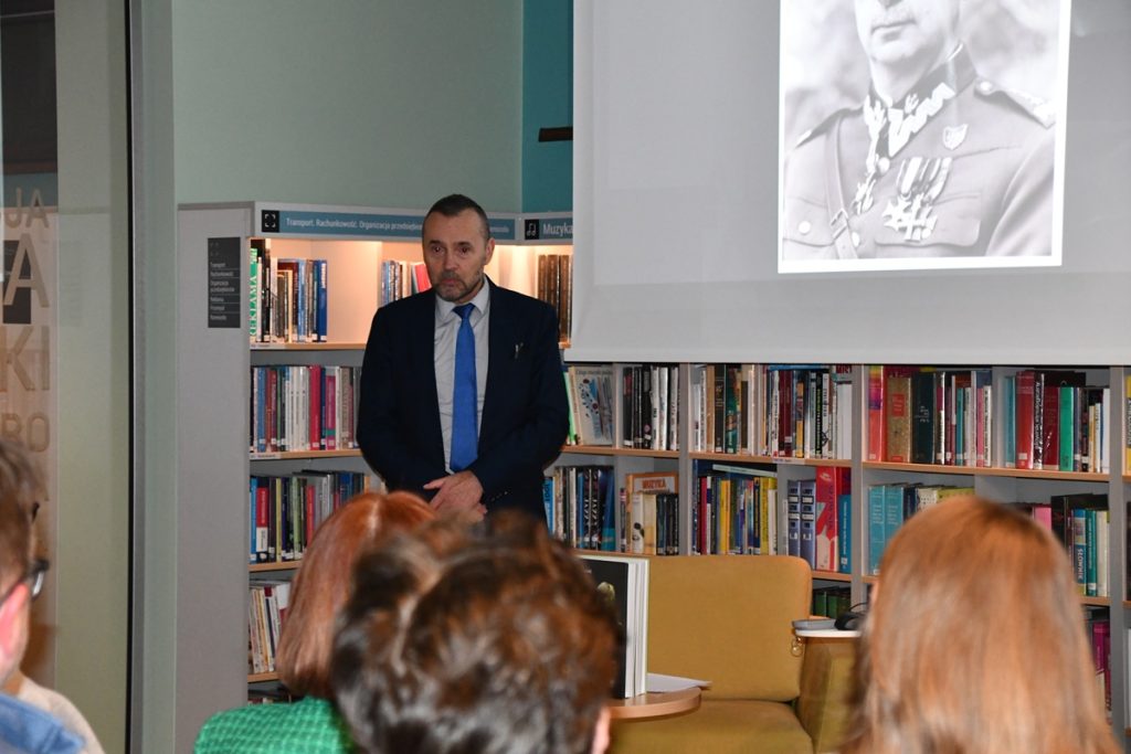 2 grudnia 2025 r. w nowotomyskiej bibliotece odbyło się ostatnie w tym roku spotkanie z cyklu „Biblioteki Regionu”, które poświęcone zostało wyjątkowej postaci, związanej również z naszym terenem – generałowi Kazimierzowi Sosnkowskiemu – współtwórcy Wojska Polskiego, Naczelnemu Wodzowi Polskich Sił Zbrojnych i wybitnemu mężowi stanu.