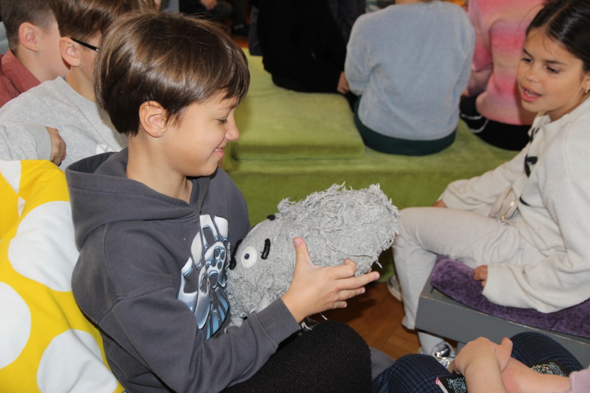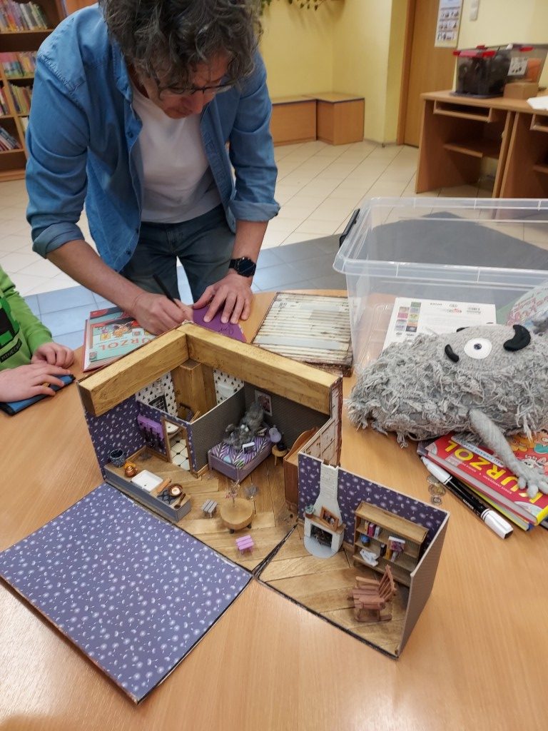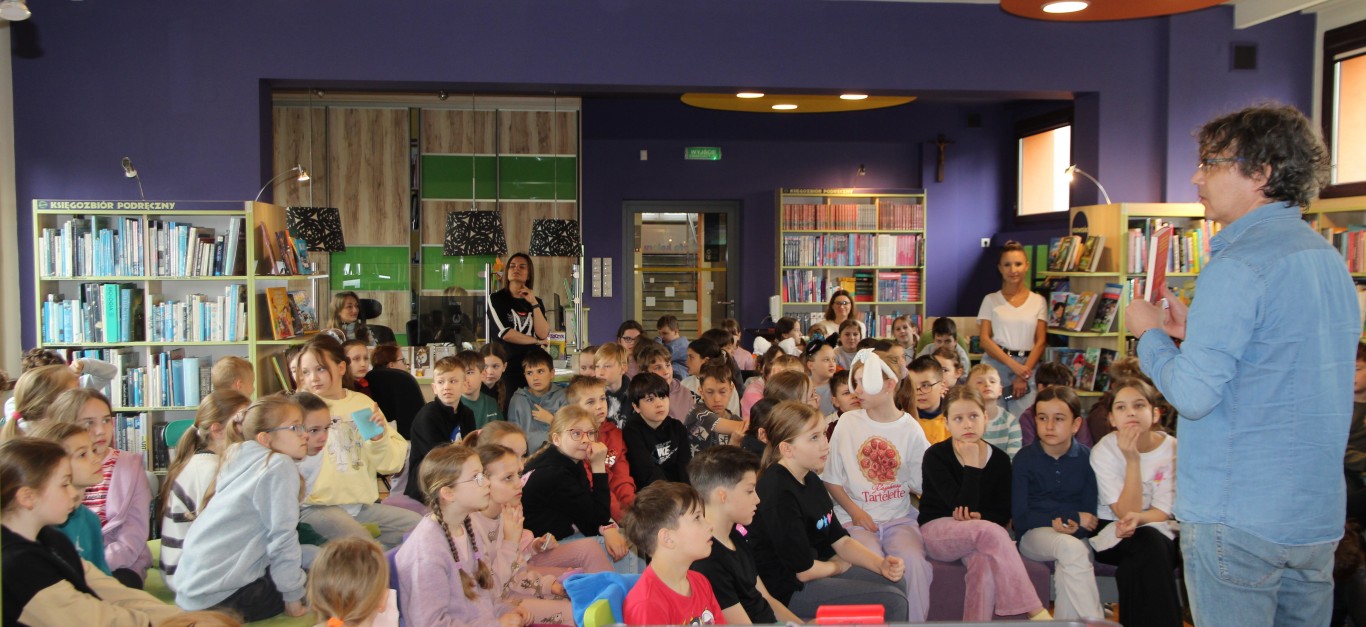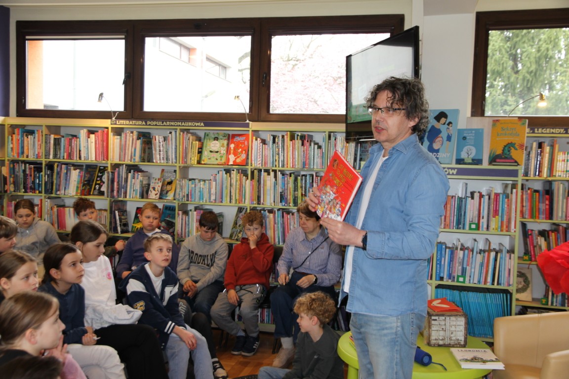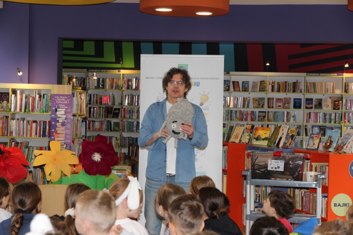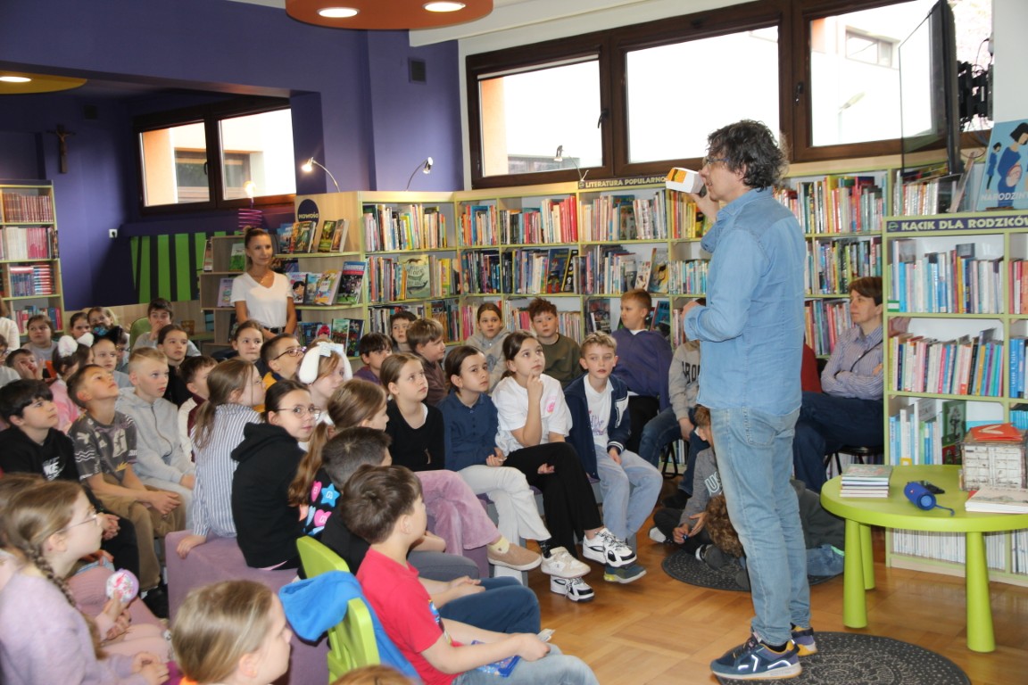 Nie zabrakło także pytań ze strony uczestników. Autor z dużą swobodą i humorem opowiadał o początkach swojej pisarskiej pasji, zdradzając, skąd wzięła się jego fascynacja trudnymi tematami przedstawianymi w przystępny sposób dla młodych odbiorców. Dzieci mogły również bliżej poznać postać Kurzola – pisarz przywiózł ze sobą maskotkę bohatera oraz rekwizyty przedstawiające elementy układu trawiennego, które wzbudziły duże zainteresowanie.