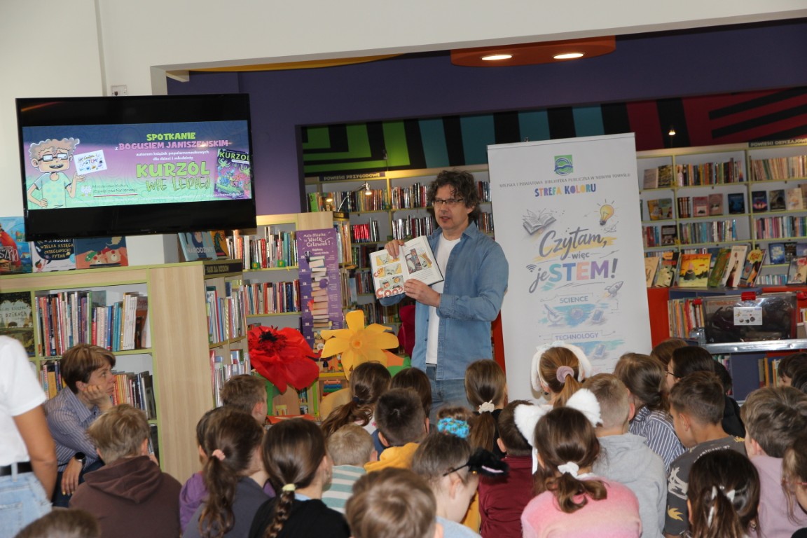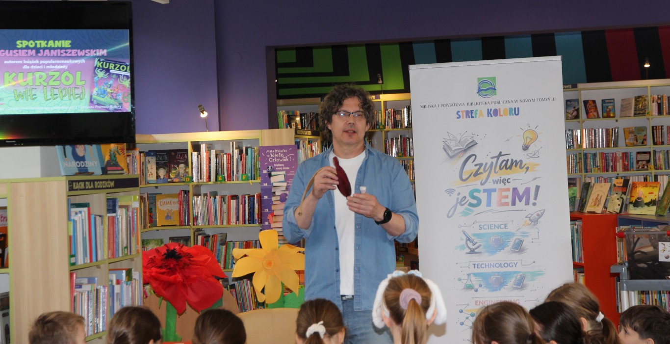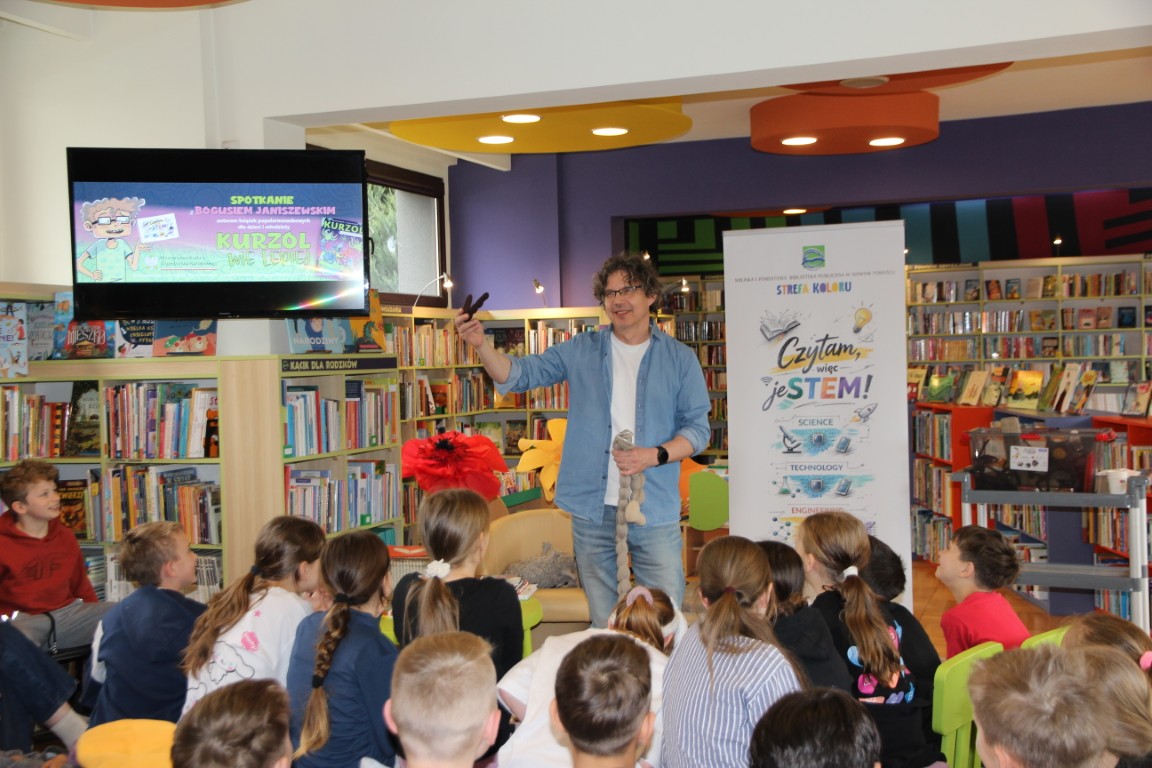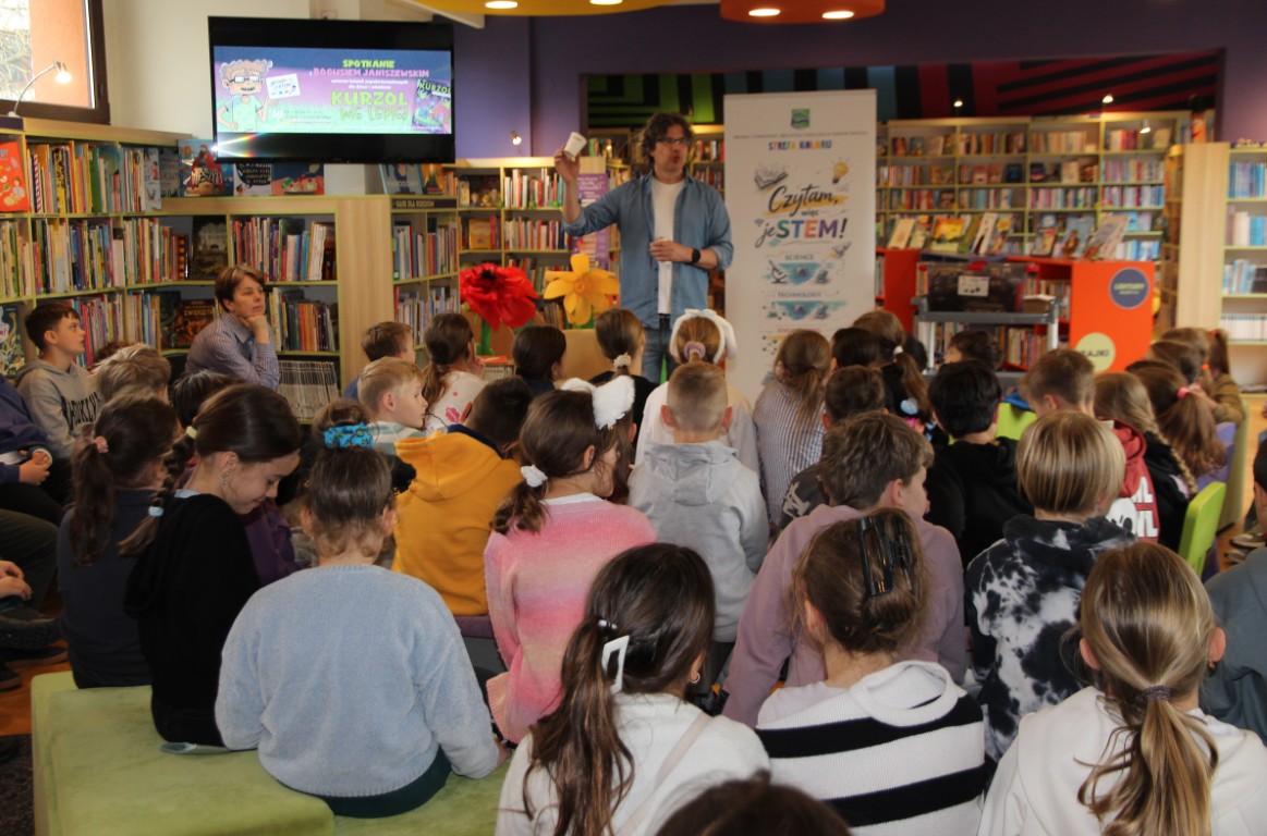 „Kurzol wie lepiej” to pierwsze spotkanie zrealizowane w ramach projektu „Czytam więc jeSTEM!”. Gościem specjalnym był Boguś Janiszewski – autor popularnonaukowych książek dla dzieci i młodzieży, m.in. serii o Kurzolu oraz „To,