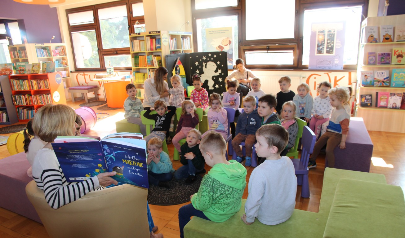 W tym miesiącu gościliśmy dzieci wraz z opiekunami z nowotomyskich przedszkoli nr 1, nr 4, nr 5 oraz Tęczowego Ogrodu. Podczas spotkań najmłodsi wysłuchali opowieści „Wielkie marzenia małego Krecika” autorstwa T. Percivala i C. Pyma.