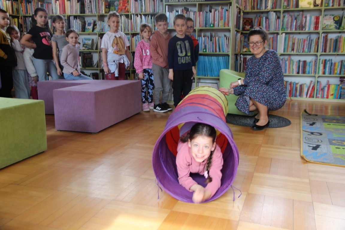 Zajęcia miały również charakter aktywny – dzieci wcielały się w role bohaterów książki. Przechodziły przez tunel niczym krecik, „odwiedzały” norki liska i króliczka, puszczały latawiec oraz „nurkowały” w rzece. Dzięki temu mogły jeszcze lepiej poczuć atmosferę opowieści i zaangażować się w jej przebieg.