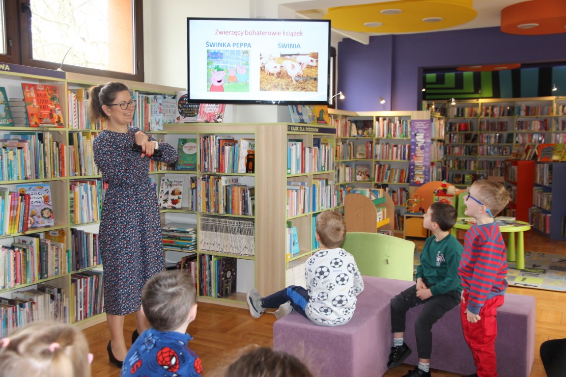 Po części ruchowej przedszkolaki zmierzyły się z zagadkami, odgadując zwierzęta przedstawione zarówno w realistyczny sposób, jak i w artystycznych interpretacjach ilustratorów książkowych.