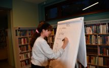 Opiekunką Kawiarenki Językowej jest animatorka kultury nowotomyskiej biblioteki – Izabela Putz.
