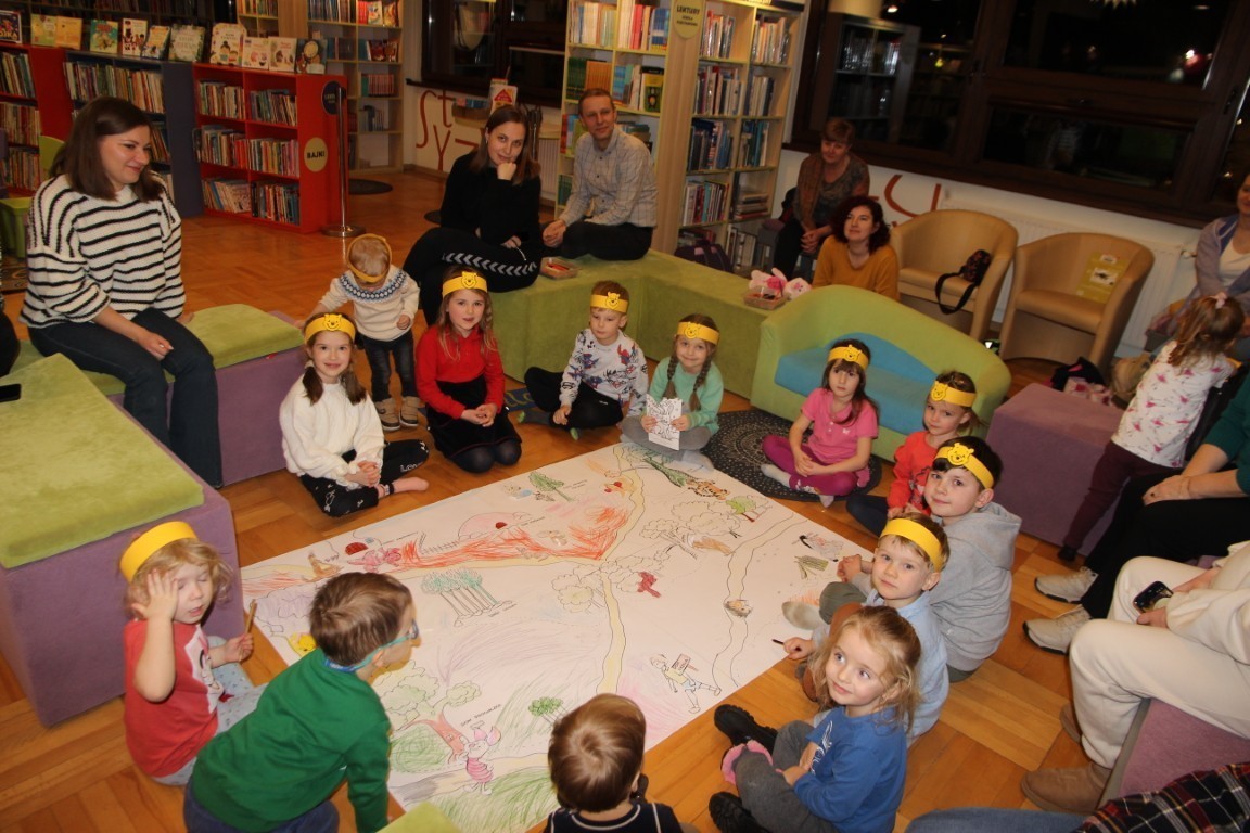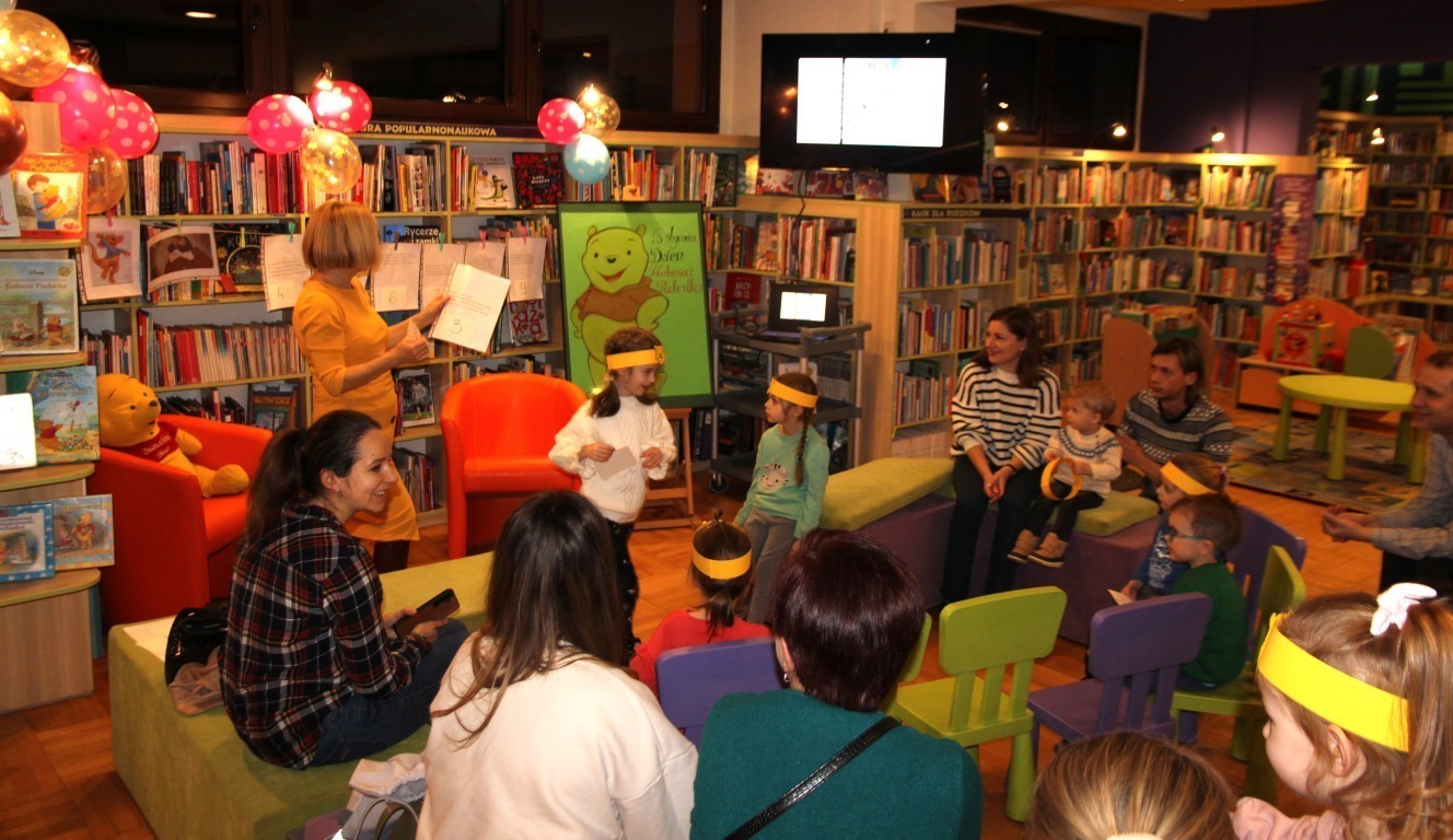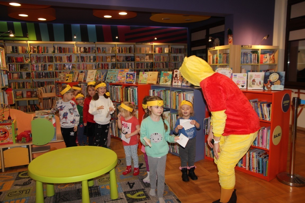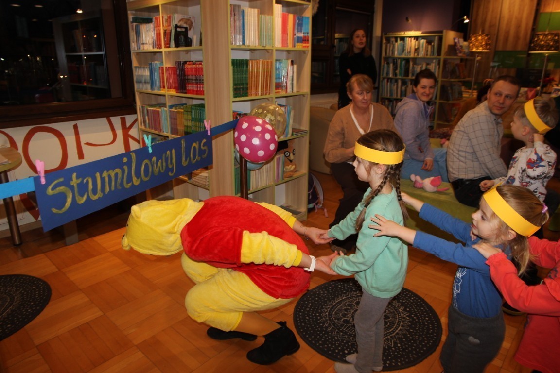 W czwartkowe popołudnie, 15 stycznia 2026 roku, w bibliotecznej Strefie Koloru odbyło się radosne spotkanie z okazji Dnia Kubusia Puchatka. W wydarzeniu wzięły udział dzieci wraz z opiekunami, którzy z ogromnym entuzjazmem przenieśli się do świata Stumilowego Lasu.