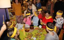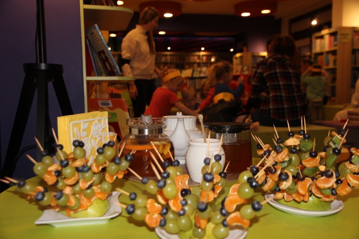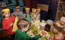 Na zakończenie spotkania na dzieci czekało małe co nieco: ciepła herbatka, owocowe szaszłyki oraz herbatniki z ulubionym przysmakiem Kubusia Puchatka – miodem.