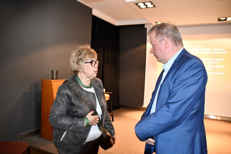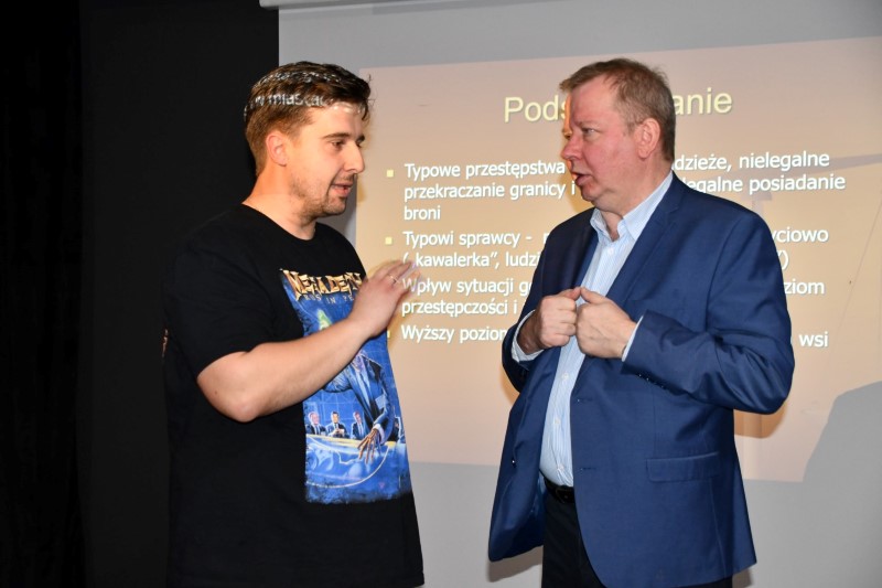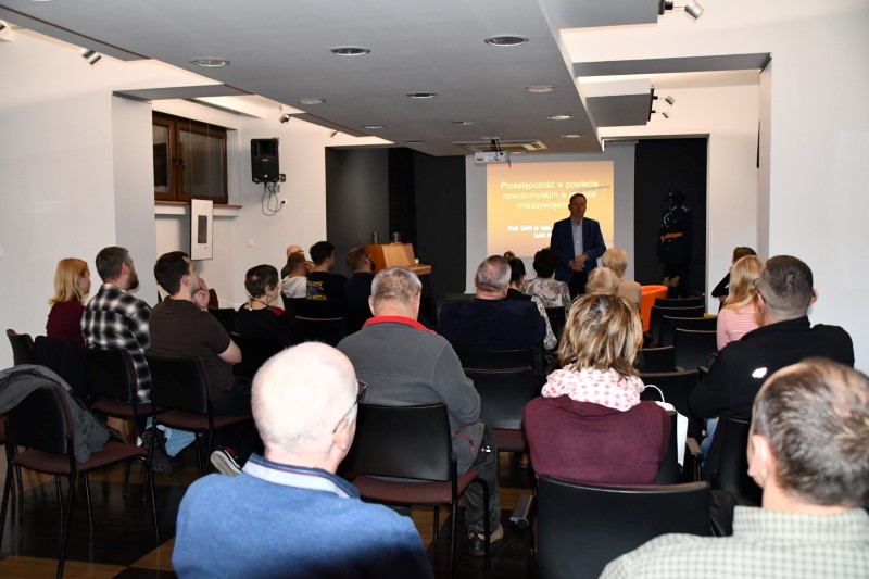 We wtorkowe popołudnie, 6 października, w gościnnych murach naszej biblioteki mieliśmy przyjemność wysłuchać prelekcji prof. UAM dra hab. Tadeusza Janickiego, który w ramach cyklu Biblioteki Regionu przeniósł nas do lat 30. ubiegłego stulecia, odsłaniając ówczesne kryminalne oblicze powiatu nowotomyskiego. Choć powiat nasz generalnie był wówczas uznawany za bezpieczny, nie był wolny od przestępczości, a życie przy granicy polsko-niemieckiej stwarzało okazje do przemytu i innych naruszeń prawa. Dowiedzieliśmy się, że to przez Nową Wieś Zbąską, Trzciel, Stary Folwark, Jabłonkę Starą, czy odcinek Zbąszyń – Nowy Tomyśl, wiodły najważniejsze na tym terenie szlaki przemytnicze. Sprzyjały temu m.in.: zalesienie terenu, bliskość linii kolejowej Poznań-Berlin, czy niefortunne wytyczenie granicy, dzielącej miejscowości na pół, na polską i niemiecką. Z terenu Niemiec przemycano m.in. sacharynę, zapalniczki, tytoń, maszyny, rowery oraz części do rowerów, z Polski głównie artykuły spożywcze i żywy inwentarz. Granicę nielegalnie przekraczali także polscy robotnicy sezonowi, by uniknąć kosztów wyjazdu do Niemiec, oraz Niemcy w celu utrzymywania kontaktów rodzinnych, przemytu czy działalności politycznej na szkodę Polski. Do przyczyn przestępczości należały trudne warunki ekonomiczne, kryzys gospodarczy oraz sytuacja polityczna. W powiecie dochodziło do sporów między Stronnictwem Narodowym a obozem sanacyjnym, co skutkowało licznymi sprawami karno-administracyjnymi. Podłoże polityczne miały również przestępstwa na tle narastającego konfliktu polsko-niemieckiego popełniane przez mniejszość niemiecką. Szczególnie koniec lat 30. XX w. obfitował w odnotowywaniu przypadków szerzenia antypolskiej propagandy, czy oskarżeń o prowadzenie działalności szpiegowskiej. Badania naukowe zaproszonego gościa, oprócz podłoża polityczno-gospodarczego, skupiały się także na liczbach zawartych w raportach policyjnych. Cały wachlarz przestępstw różnego autoramentu: od kradzieży i włóczęgostwa, przez łamanie przepisów drogowych, nielegalny handel, produkcję bimbru, kłusownictwo, opilstwo, podpalenia, kuplerstwo, sutenerstwo, aż po gwałty, ciężkie uszkodzenia ciała, zabójstwa, czy fałszowanie dokumentów oraz oszustwa finansowe, omówił on także pod względem statystycznym. Najczęściej popełniano kradzieże, stanowiące w niektórych latach ponad połowę wszystkich czynów karalnych, głównie przez osoby bez stałego zatrudnienia. Cięższe przestępstwa były znacznie rzadsze, niektóre miały wręcz charakter incydentalny. Sprawcy wywodzili się z różnych nacji i wszystkich grup społecznych. Mniej zamożni dominowali liczebnie i popełniali drobniejsze wykroczenia, natomiast przedstawiciele urzędników i drobnomieszczaństwa stanowili mniejszość, lecz ich czyny miały większą wagę. Wśród przestępców przeważali mężczyźni, choć w przypadku przemytu aż 30% zatrzymanych stanowiły kobiety. Spotkanie było niezwykle interesujące i pozwoliło uczestnikom lepiej zrozumieć realia życia na pograniczu w okresie międzywojennym oraz złożoność zjawisk społecznych, związanych z występującą tu przestępczością. Nie obyło się również bez kuluarowych dyskusji.