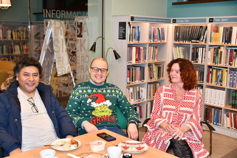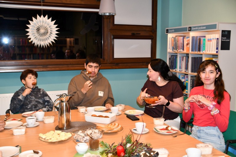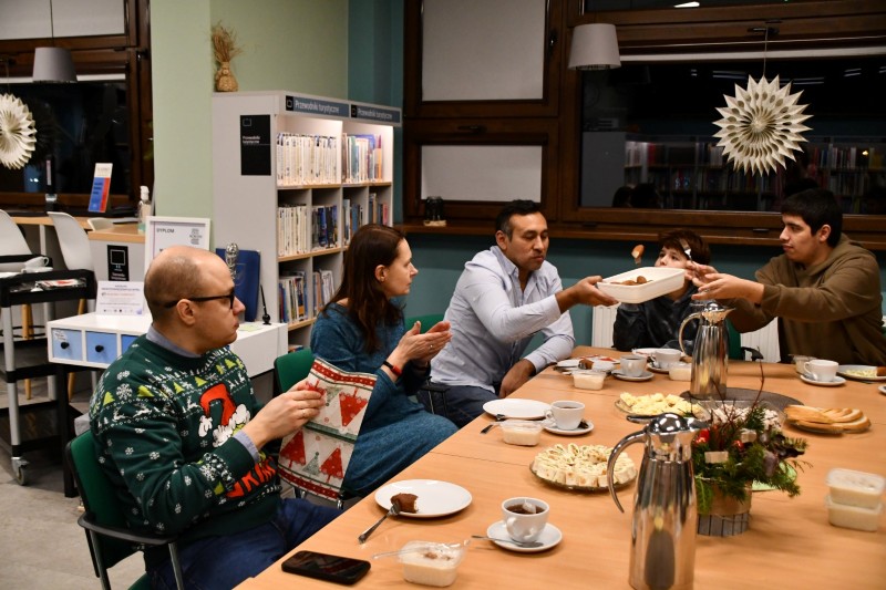 Spotkanie miało świąteczny, ciepły charakter. W atmosferze kolęd toczyły się rozmowy i dyskusje, pełne uśmiechu, wspomnień oraz planów na przyszłość. Nie zabrakło także międzynarodowych smaków. Na wspólnym stole pojawił się tradycyjny śledź, wyśmienite sałatki i przekąski, a także kolumbijskie buñuelos, które okazały się prawdziwym kulinarnym hitem.