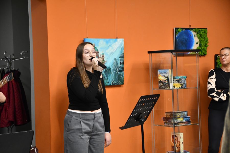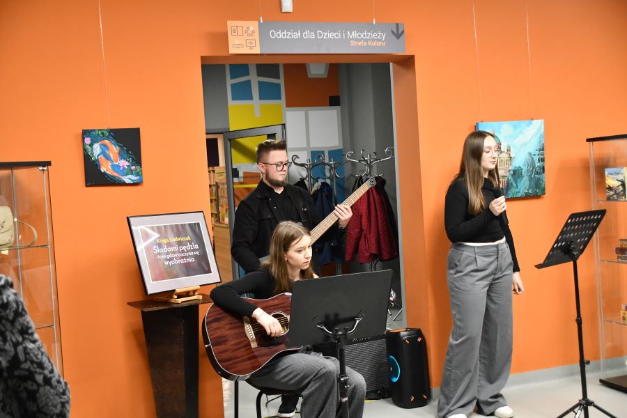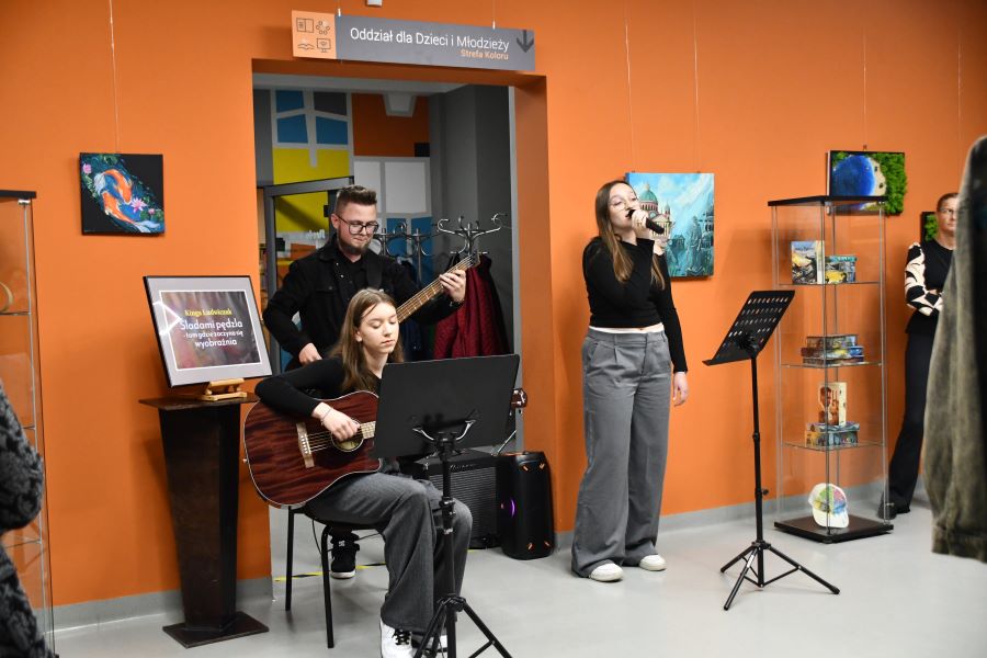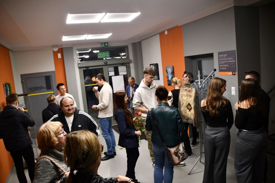 Podczas wernisażu goście mieli okazję wysłuchać nastrojowego występu w wykonaniu tria w składzie: Maria Kaczmarek (wokal), Aleksandra Majorczyk (gitara) oraz Kamil Siudej (gitara basowa). Artyści stworzyli kameralny klimat, wprowadzając publiczność w refleksyjny, pełen emocji nastrój. Ich interpretacje utworów łączyły subtelność i wyrazistość, doskonale dopełniając artystyczny charakter wydarzenia. Wieczór upłynął w ciepłej, inspirującej atmosferze. Rozmowom o sztuce nie było końca, a odkrywanie świata wyobraźni, który Kinga z taką lekkością i pasją przenosi na swoje prace, było ważnym elementem debat w kuluarach.