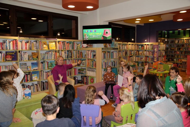 14 listopada w Strefie Koloru naszej biblioteki odbyło się kolejne spotkanie z cyklu Let’s Read, które tym razem przeniosło dzieci w świat sympatycznych bohaterów serii „Pip and Posy”. Gościem wydarzenia była Anna Borowska ze szkoły językowej Front English School, która przeczytała dzieciom opowieść o przygotowaniach Pip i Posy do wspólnej nocowanki.