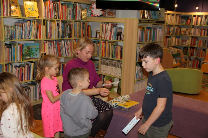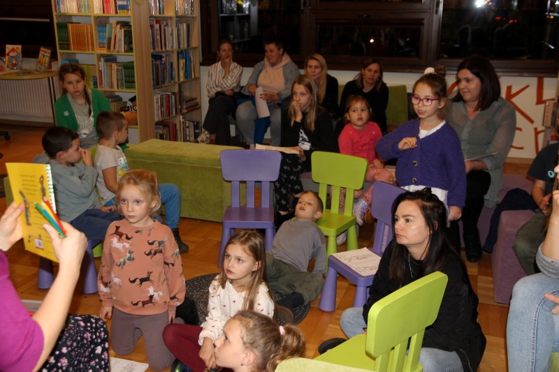 Mali uczestnicy z dużym zainteresowaniem śledzili przygody bohaterów, a dzięki czytaniu w języku angielskim mogli w naturalny sposób poznawać nowe słowa i osłuchiwać się z brzmieniem języka. Spotkaniu towarzyszyła radosna atmosfera, dzieci otrzymały od prowadzącej zakładki do książki oraz kolorowankę z bohaterami wysłuchanej historii.