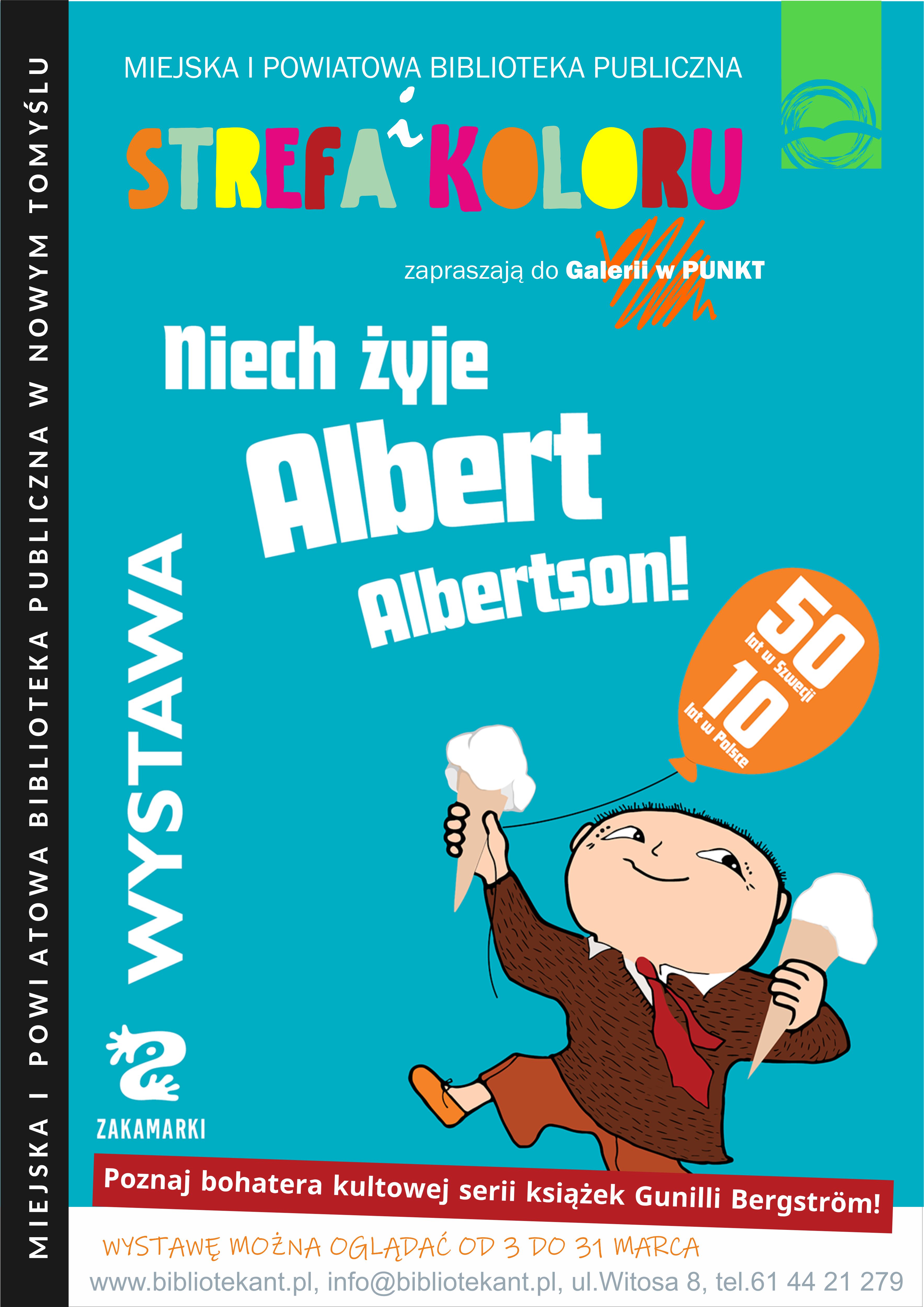 🔴🟠🟡Strefa Koloru🟢🔵🟣 zaprasza w marcu na wystawę o Albercie Alberstonie – bohaterze książek Gunilli Bergström.